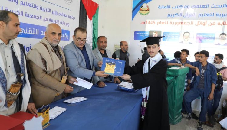 نظم معهد ذهبان التقني الصناعي في أمانة العاصمة اليوم، حفلا تكريما لأوائل الجمهورية من طلاب المعهد للعام 1445هـ، دفعة “طوفان الأقصى” برعاية الجمعية الخيرية لتعليم القرآن الكريم.